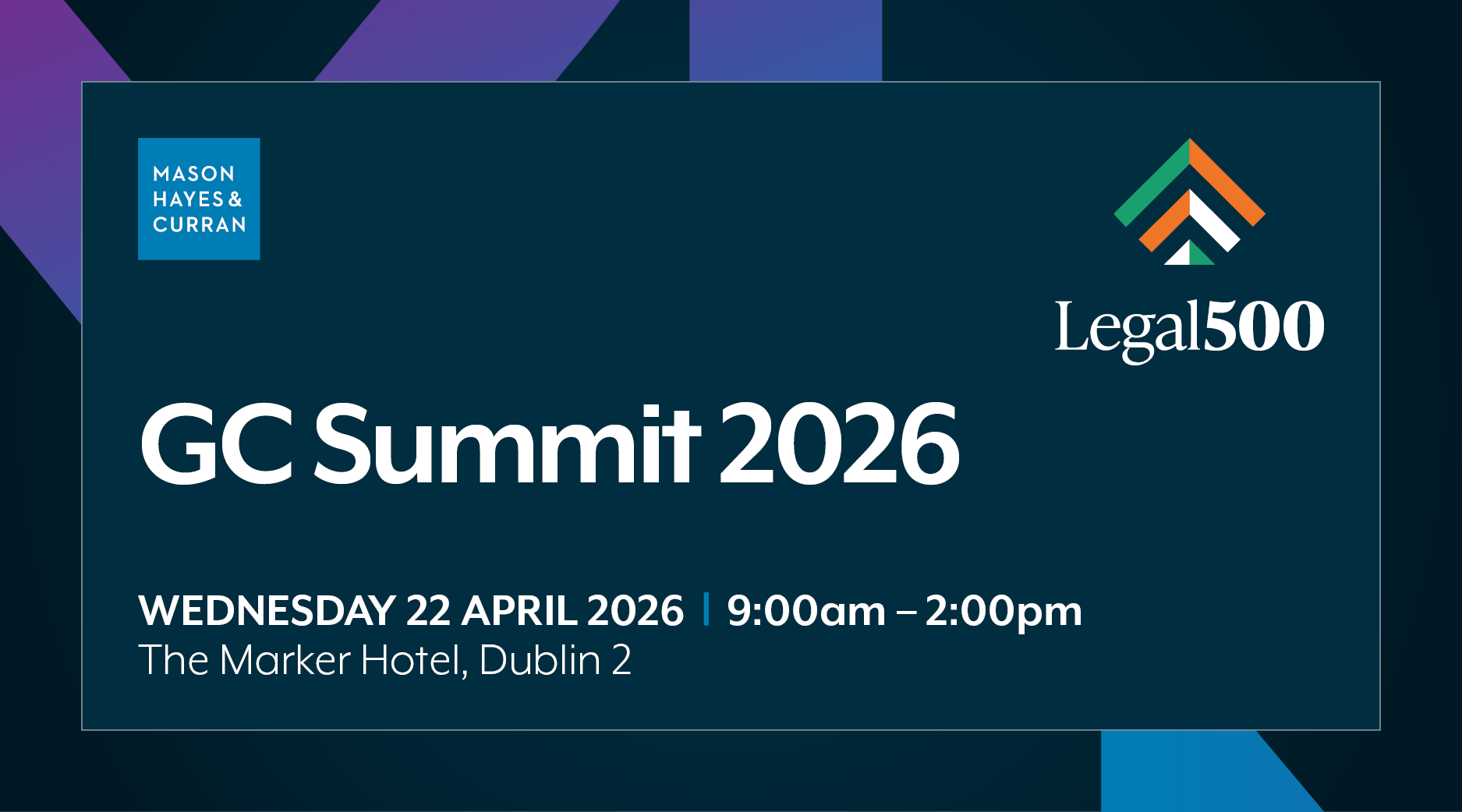 We have a limited number of guest places available for clients. If you would like to register your interest, please email events@mhc.ie and include "GC" in the subject line.